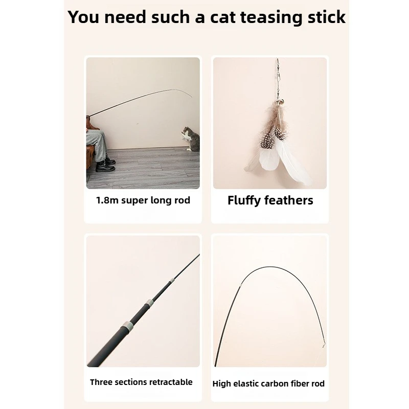 Introducing the 1.8M Cat Teaser, a four-section expandable cat fishing rod toy designed for interactive play with your kittens. This engaging toy features catnip to attract your pets and keep them entertained for hours.