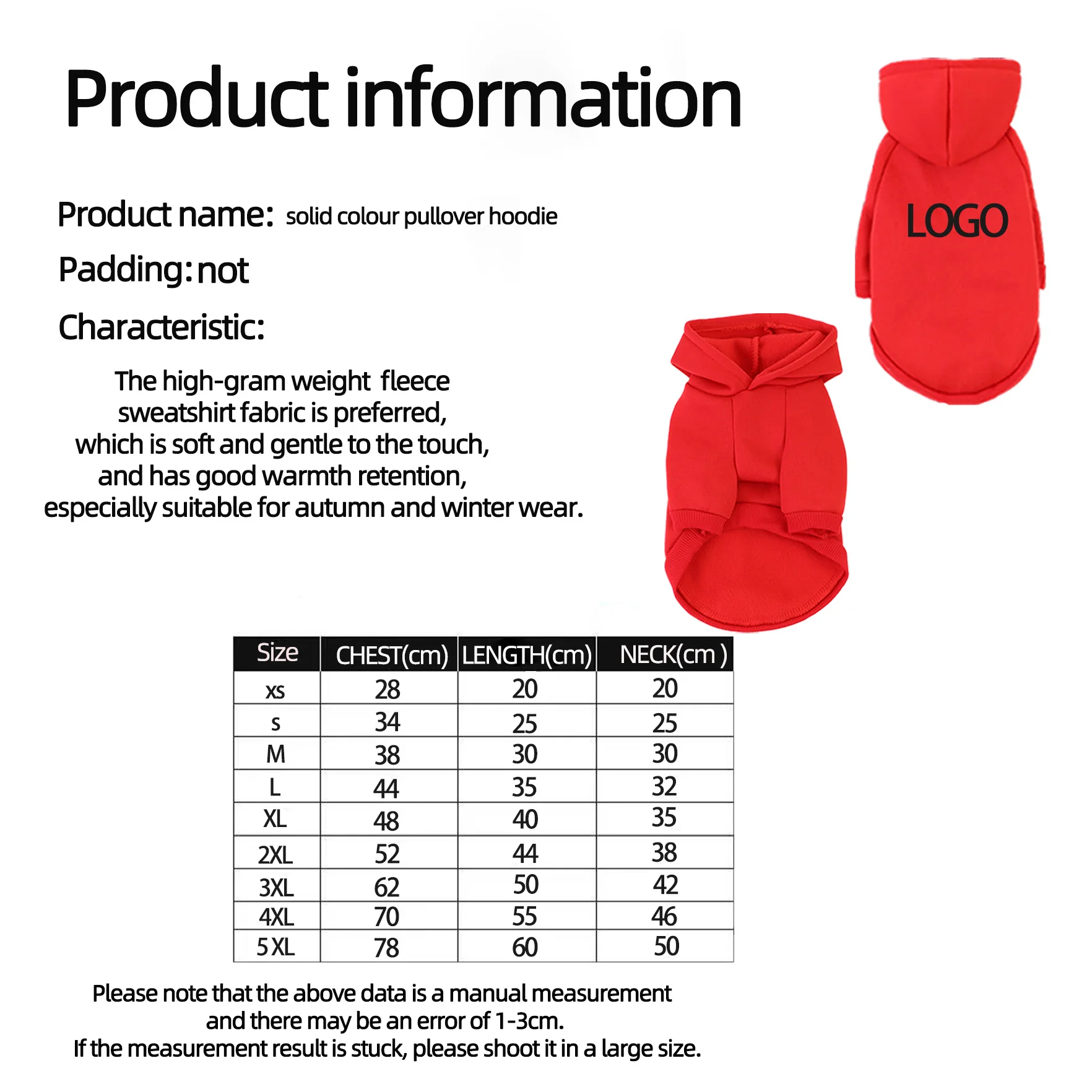 Size: Approximately S, M, L, XL, XXL, XXXL, 4XL, 5XL, 6XL. Please measure your pet carefully before selecting a size. Allowable deviation is 0.4 – 0.8 inches (about 1 – 2 centimeters).