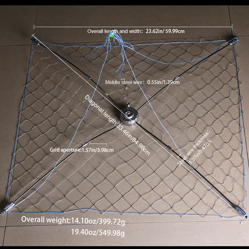 Universal Cage Style Fishing Net for Crab Catching Retractable Steel Wire