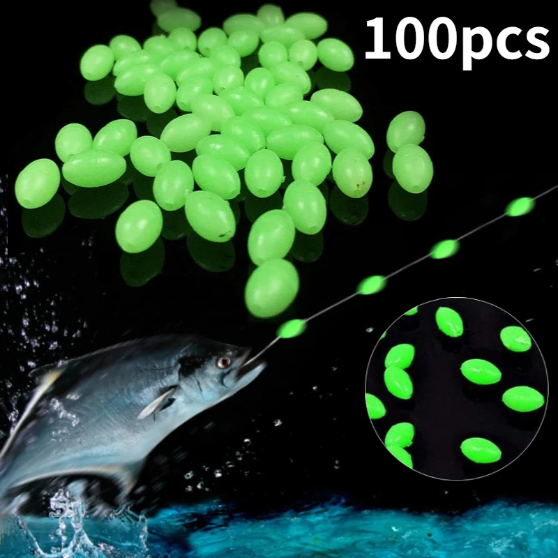 100pcs Oval Night Luminous Fishing Beads Glowing Sea Fishing Lure Bait