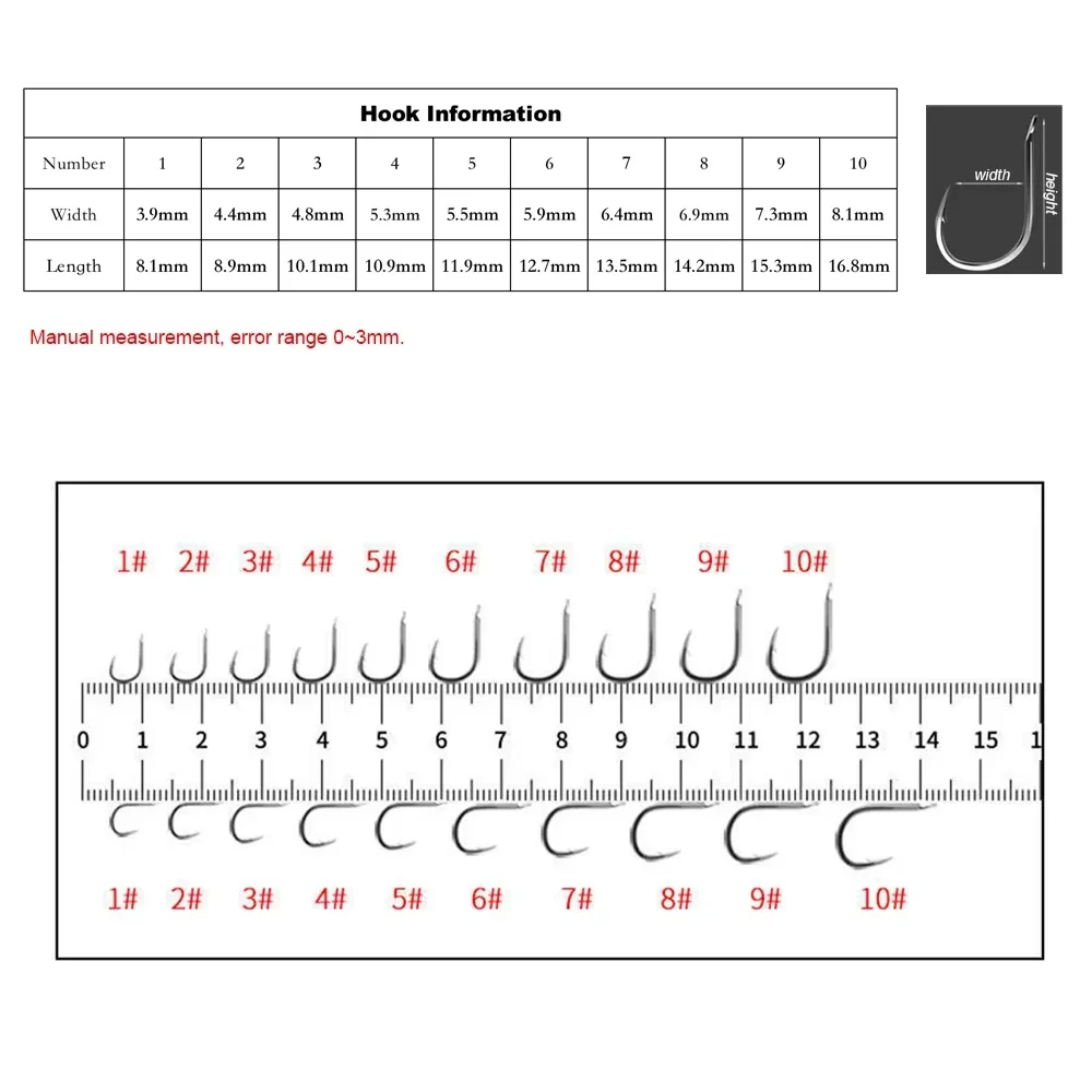 - Includes 10 double hooks with various sizes: HOOK NO.1 to HOOK NO.10.