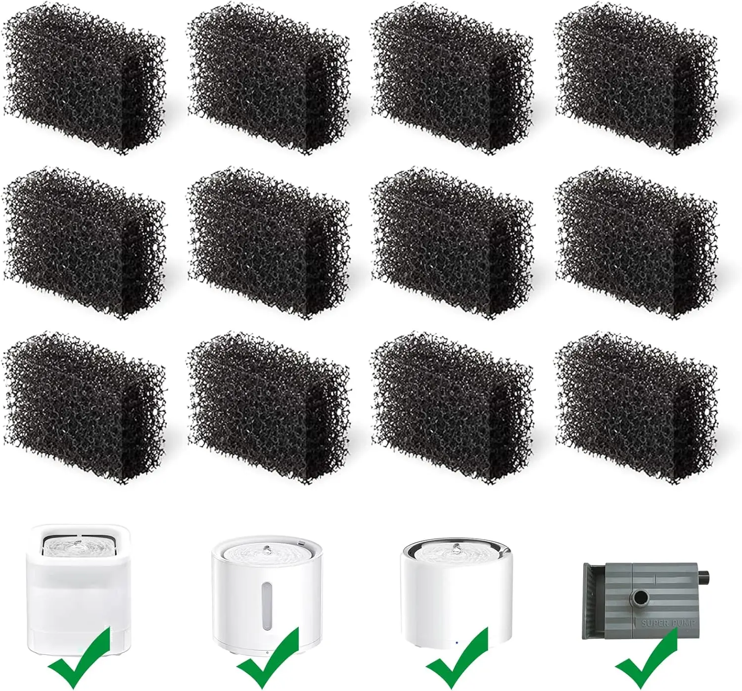 12 Pack Cat Water Fountain Sponge Filters Replacement Foam Filters for Pet Fountain