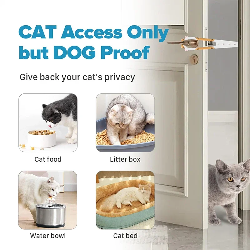 This adjustable cat door holder latch allows your cat to enter and exit freely while keeping dogs out. It is designed to prevent larger pets from accessing areas where they shouldn’t be, such as kitchens or bathrooms.