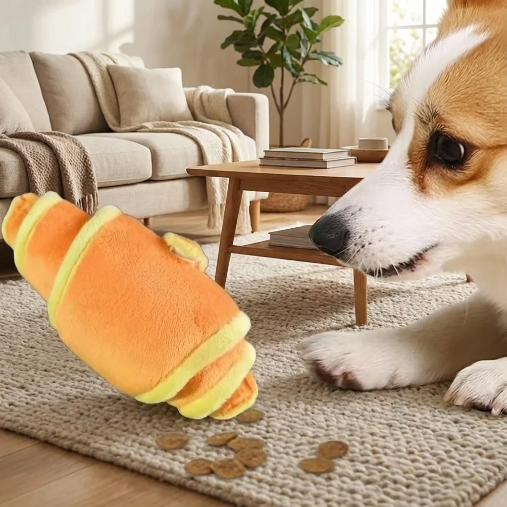 Introducing our delightful Plush Croissant Dog Toy, designed specifically for small to medium dogs. This charming toy not only provides endless fun but also stimulates your pet’s intelligence, making it an essential addition to your furry friend’s playtime collection.