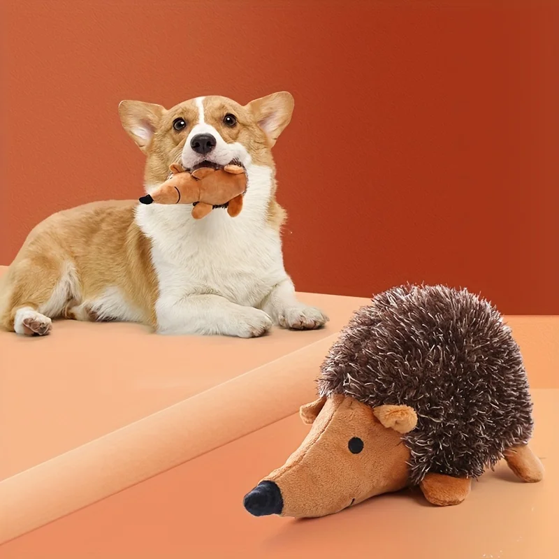 Squeaky Hedgehog Plush Dog Toy Soft Durable Chew Interactive Play Companion