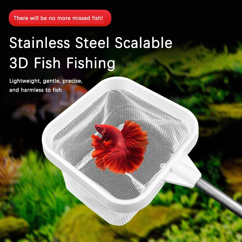 This stainless steel telescopic hand fishing net is designed for catching fish and shrimp, making it an essential accessory for aquarium maintenance and outdoor fishing activities.