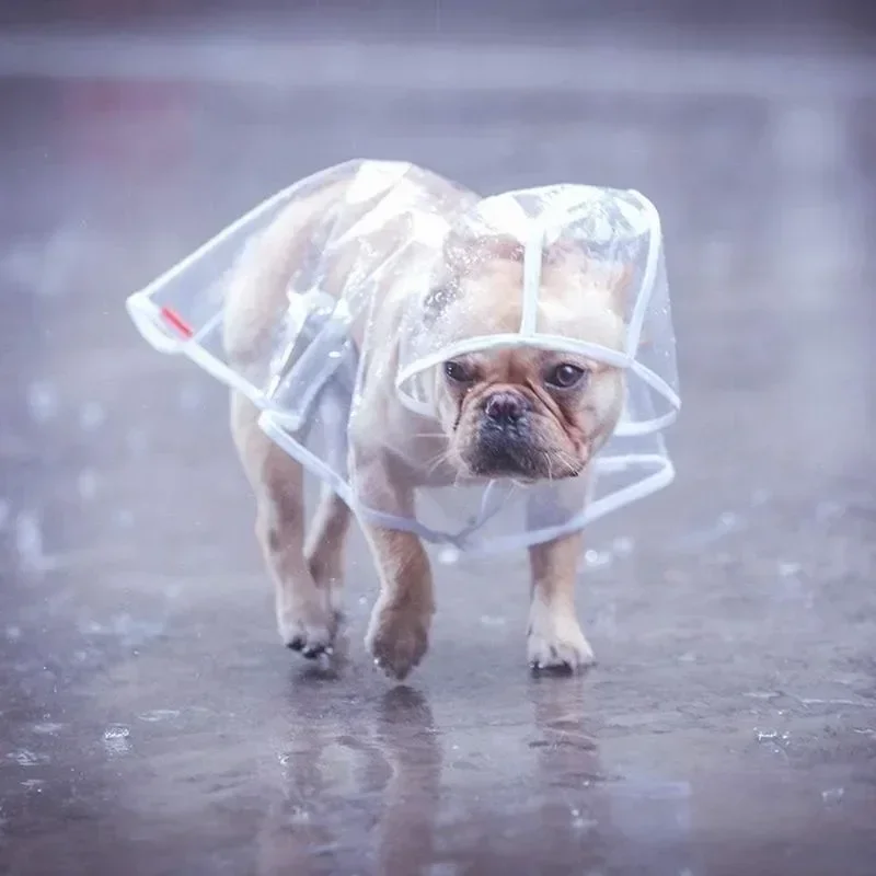 This transparent hooded raincoat is designed for small dogs and puppies, providing protection from rain while keeping them stylish. Perfect for outdoor activities, this poncho is a must-have accessory for your pet.