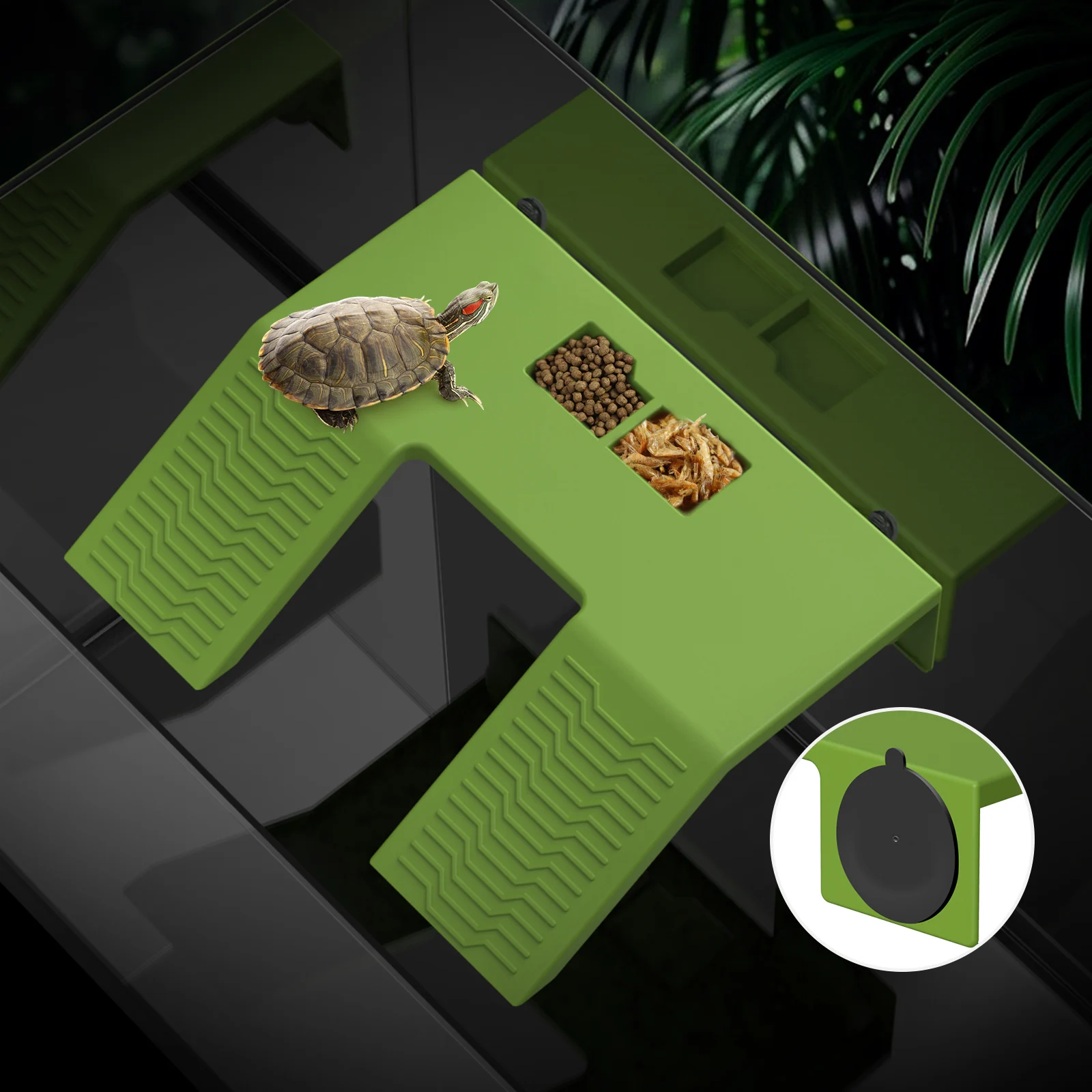 The Turtle Basking Platform is designed for aquatic reptiles and amphibians, providing a comfortable resting area for tortoises. It features suction cups for secure placement in terrariums.