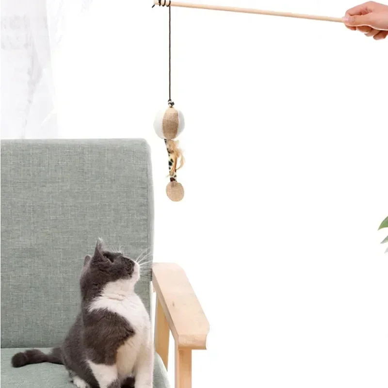 Vibrant Feather Wand Interactive Cat Toy with Wooden Stick for Kittens
