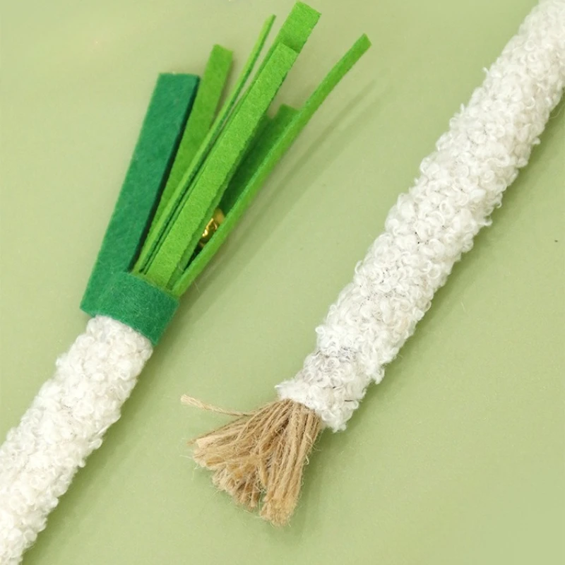 This wooden scallion cat toy is designed to provide your feline friend with hours of entertainment and stimulation. Its realistic vegetable appearance encourages natural hunting instincts while being safe and durable for biting and chewing.