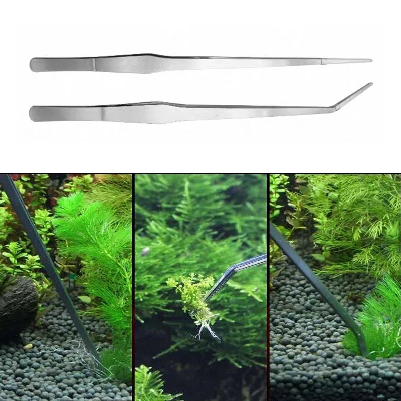 Stainless Steel Curved Aquarium Tweezers for Plants Shrimp Reef Fish Tank Cleaner