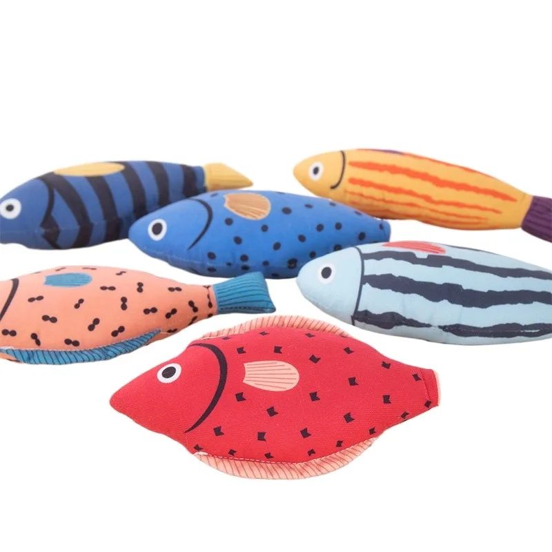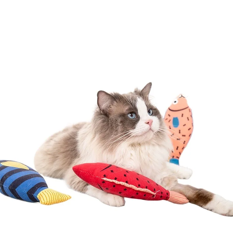 This creative cat toy is designed in a fun fish shape, perfect for engaging your feline friend. It is ideal for chewing and interactive play, providing entertainment and stimulation for your pet.