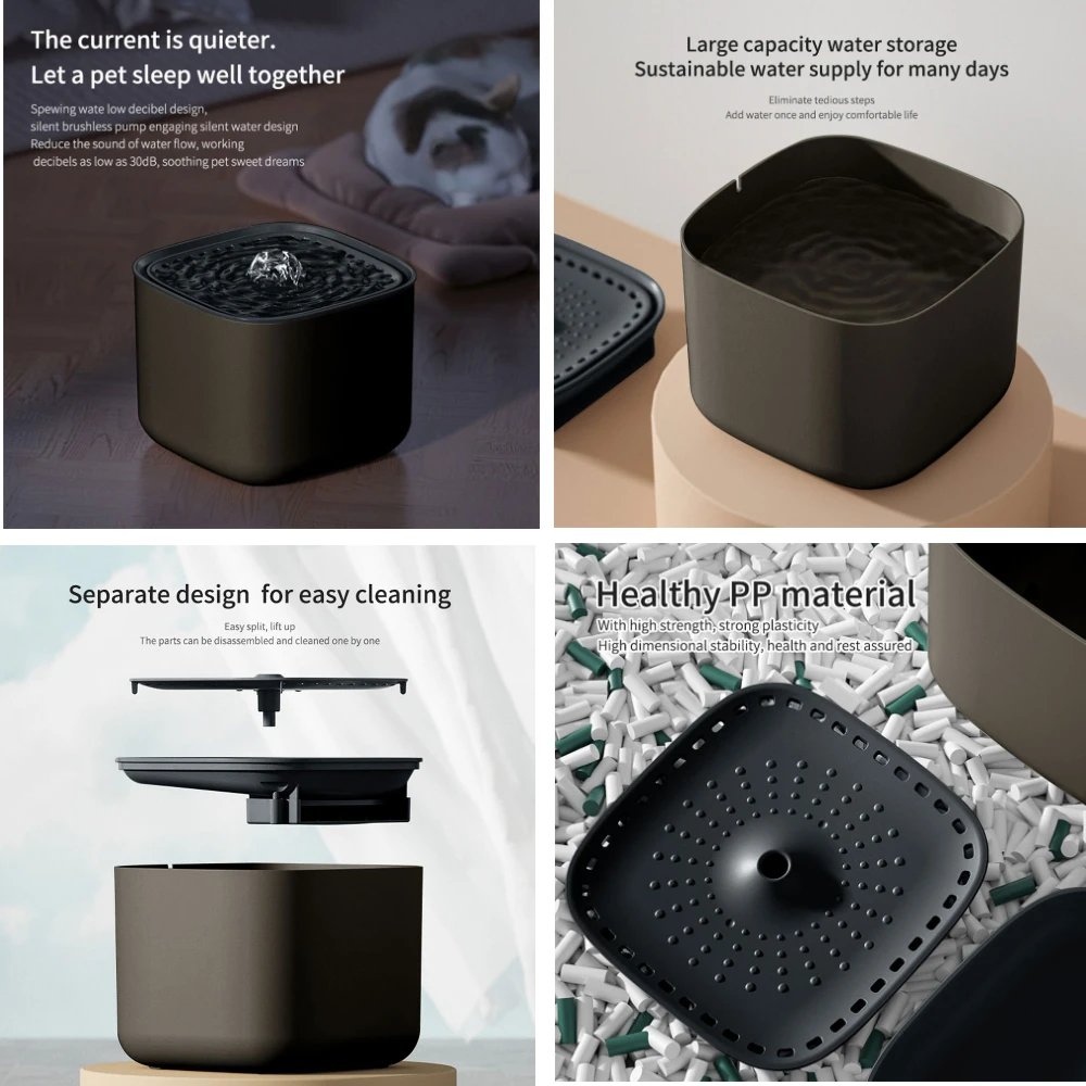 - Three different flow designs: flower waterfall, flower bubble, and soft fountain to attract pets.