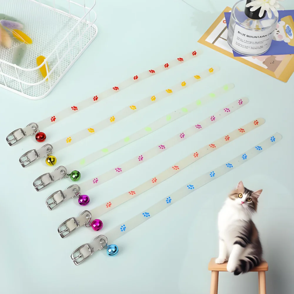 Cat Necklace Glowing Small Dog Cat Collar Anti Loss Fluorescent Silicone Bell
