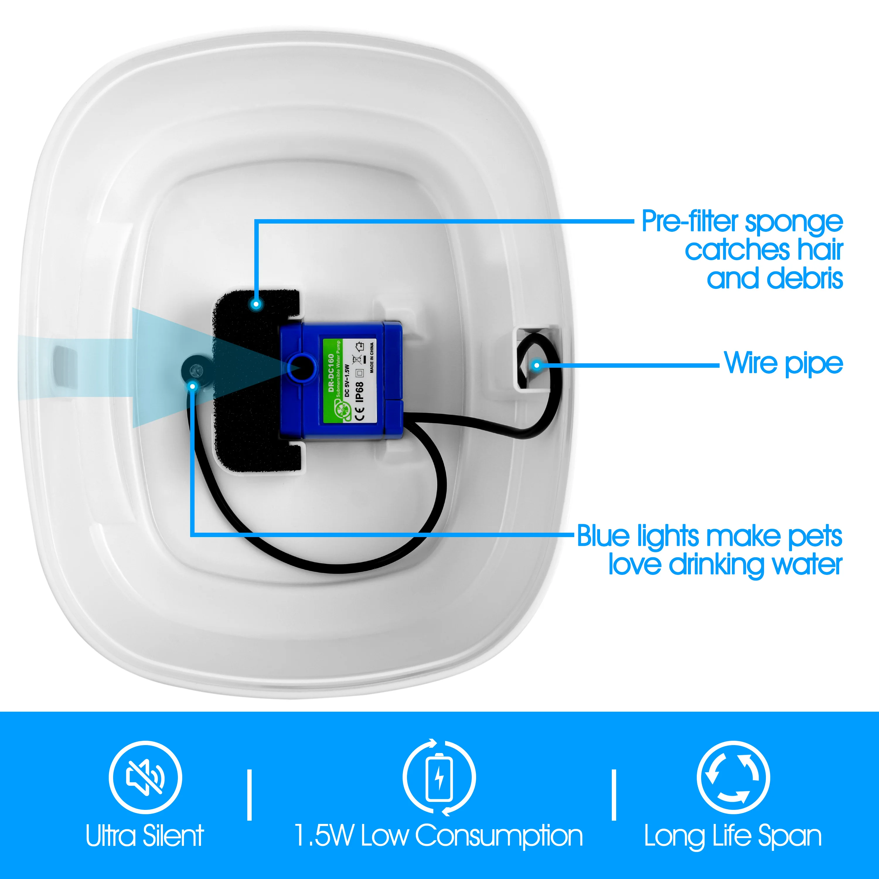 2.4L Pet Cat Drinking Water Fountain with LED Lights Motion Sensor Dog Dispenser