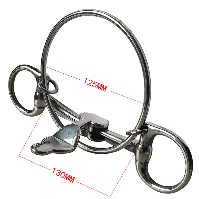 This stainless steel horse bit is designed for comfort and control during training and riding. With a mouth size of approximately 130 mm, it is perfect for equestrian enthusiasts looking for reliable equipment.