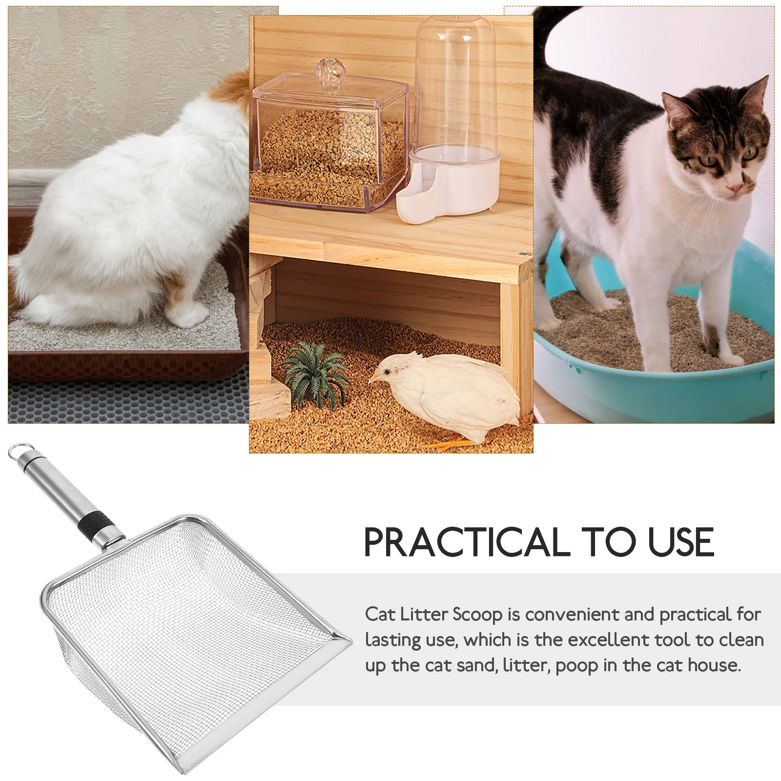 This stainless steel cat litter scoop is an essential tool for maintaining a clean litter box. Its sturdy handle provides a comfortable grip, making it easy to scoop out waste. The design allows for efficient cleaning, helping to keep your pet’s area fresh and odor-free.