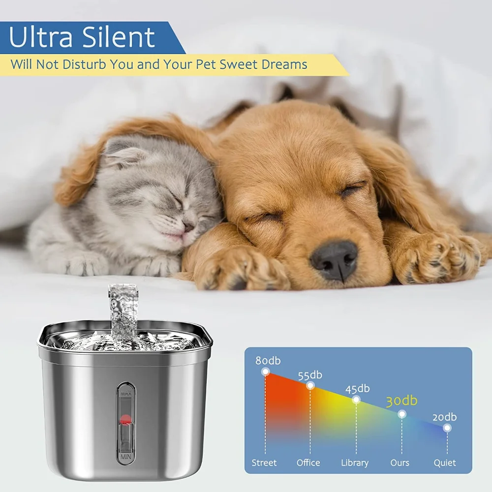 2L Intelligent Cat Water Fountain Small Dog Water Dispenser Stainless Steel