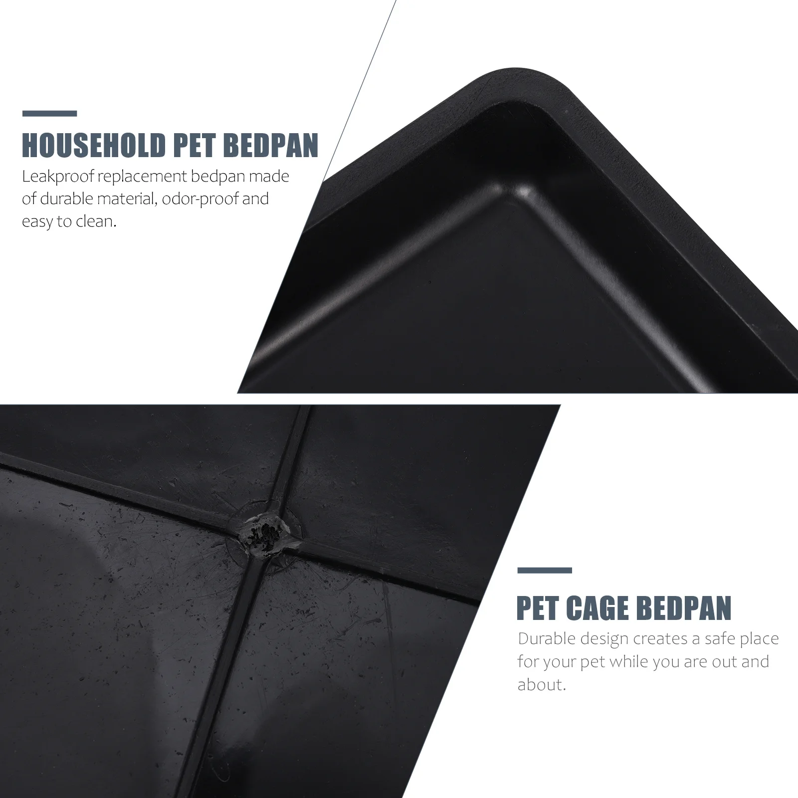 This product includes 2 pieces of leakproof replacement bedpans designed for pets. They are durable and easy to clean, making them an essential accessory for your pet’s cage.