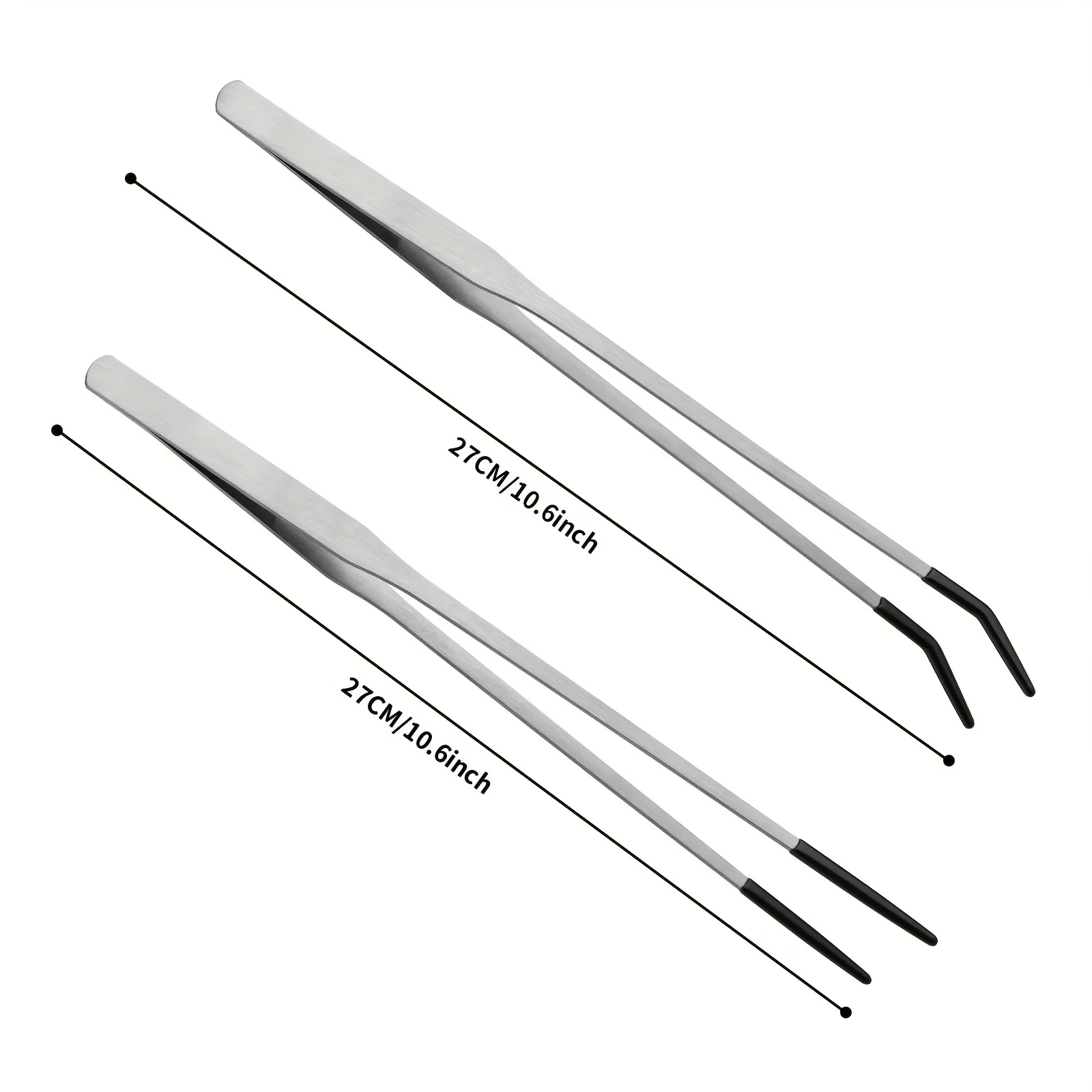 2pcs Stainless Steel Reptile Feeding Tongs – Straight & Curved, Rubber Tips, Ideal for Bearded Dragons & Aquariums
