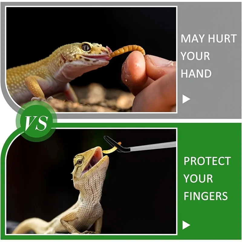 These stainless steel reptile feeding tongs are designed for ease of use and precision when feeding your reptiles. The set includes both straight and curved tongs, making it versatile for different feeding needs. The rubber tips ensure a secure grip on food items, making feeding time easier and more efficient.