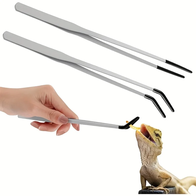 2pcs Stainless Steel Reptile Feeding Tongs Straight Curved Rubber Tips Ideal for Bearded Dragons Aquariums