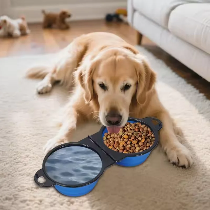 350ml Pet Double Bowl Design Foldable Bowl Travel Portable Durable