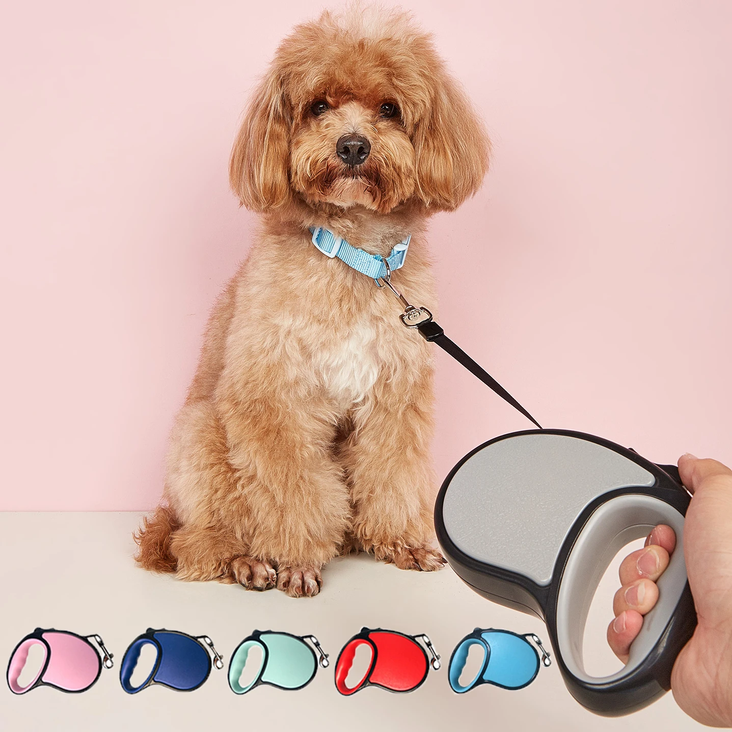 This retractable dog leash is designed for small dogs and puppies, offering a convenient way to walk your pet while allowing them some freedom to explore. Available in various candy colors, it is perfect for both travel and everyday use.