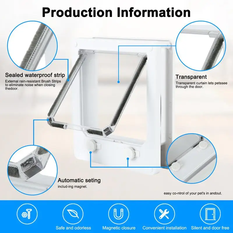 This 4 Way Cat Door is designed for small pets, providing a secure and weatherproof entry point for your cats, puppies, and kittens. Its innovative locking mechanism allows for flexible access control, making it suitable for various environments such as homes, pet shops, and catteries.