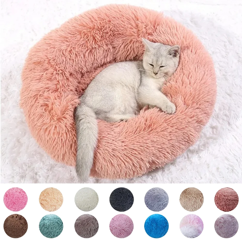 Soft Large Cat Bed Round Warm Winter Plush Medium Dog Sofa Bed Accessories