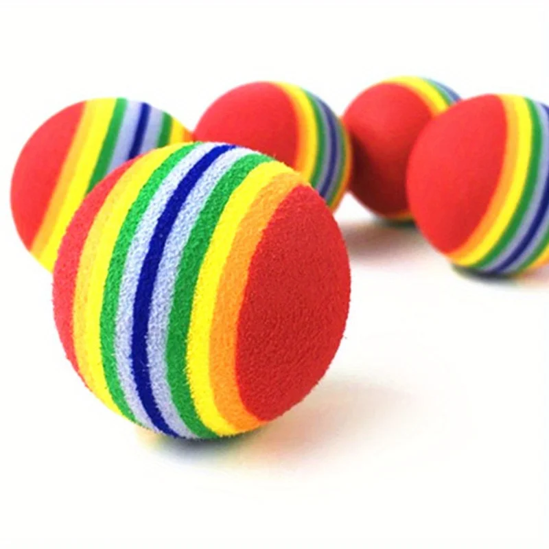 EVA Rainbow Balls Cat Toy Colorful Elastic Chew Resistant Silent Balls 5/10Pcs