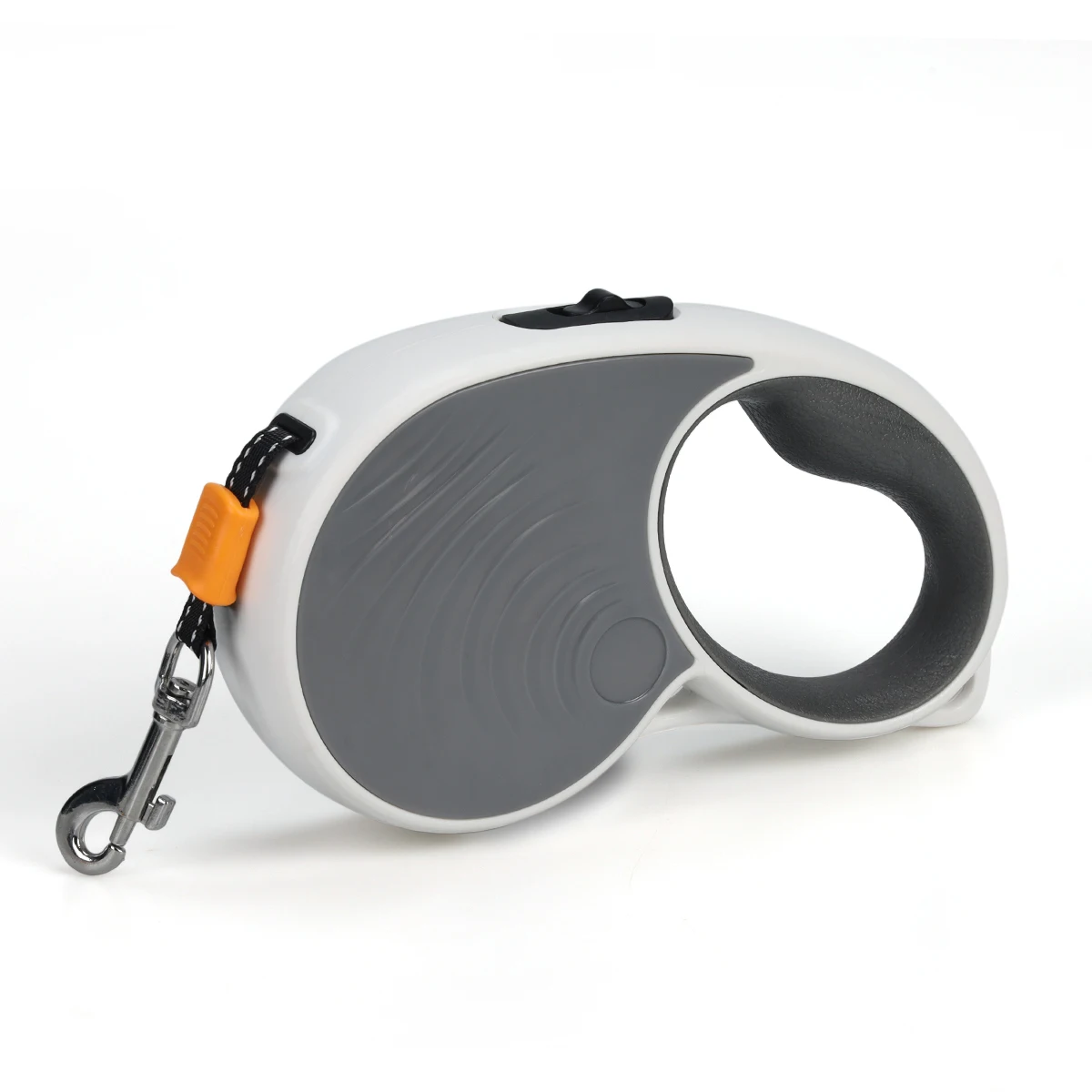 This 5M/3M reflective strip automatic retractable dog leash is designed for convenience and safety during dog walking and running. It features a one-button multi-function design, making it easy to use for pet owners.