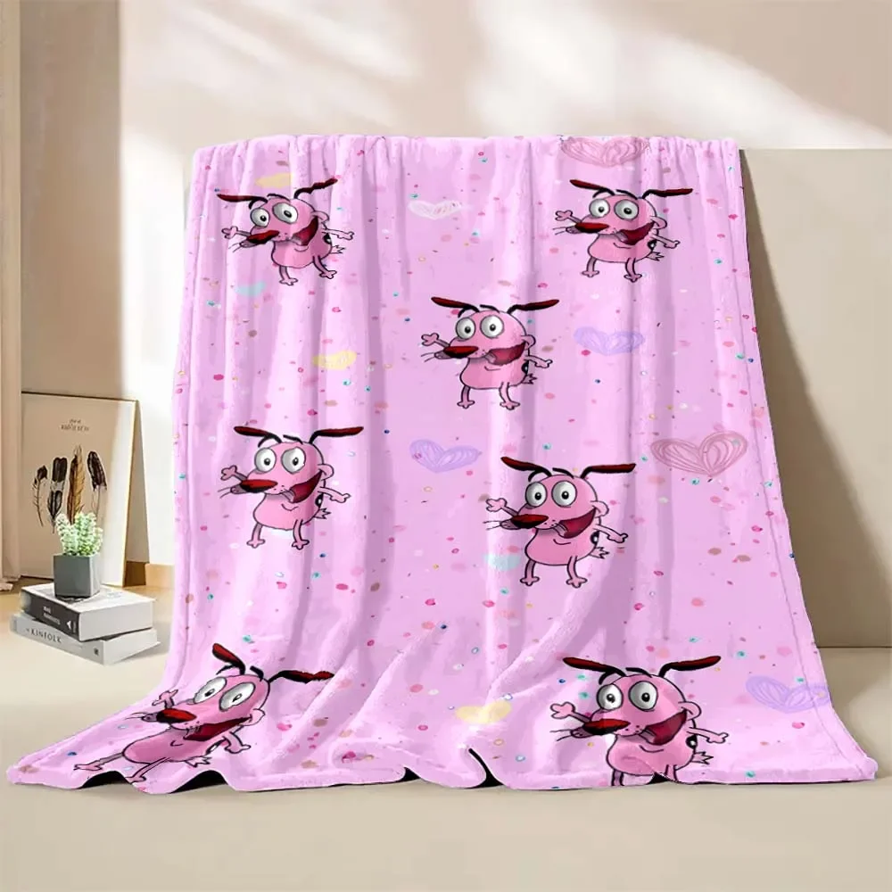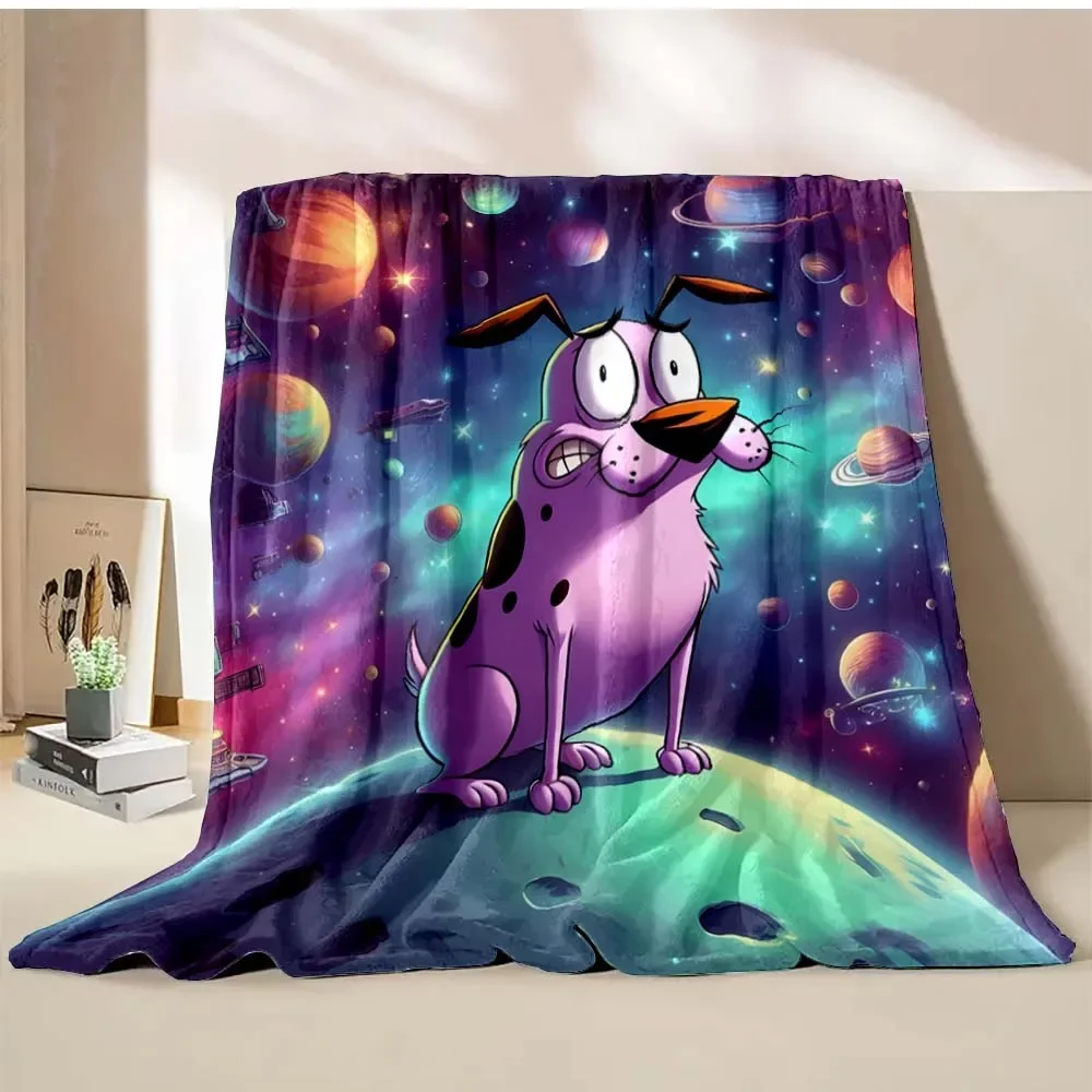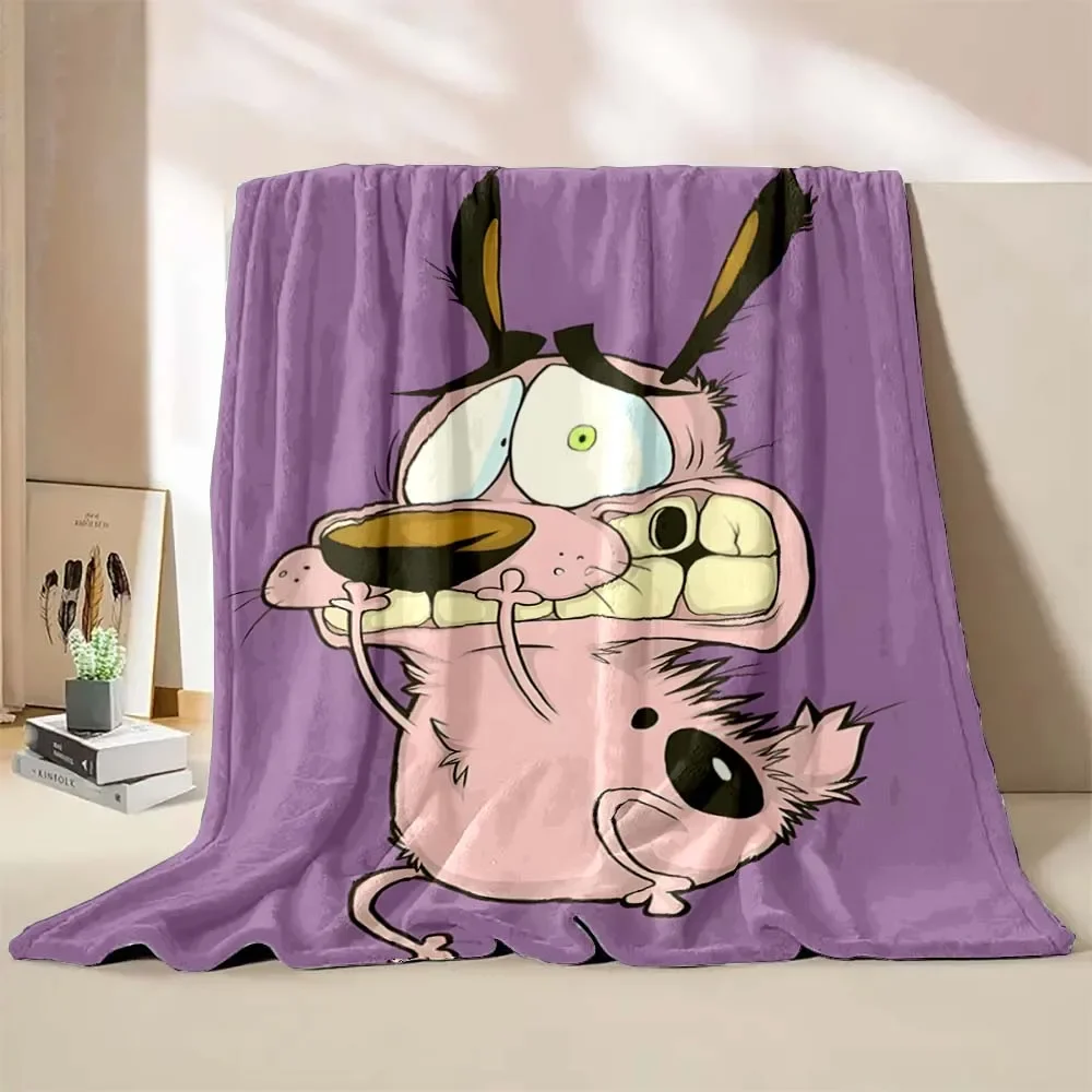 This C-Courage The Cowardly Dog Printed Blanket is a warm, soft, and comfortable blanket perfect for home or travel. It serves as a cozy bedding cover for your sofa or bed, making it an ideal gift for any occasion.