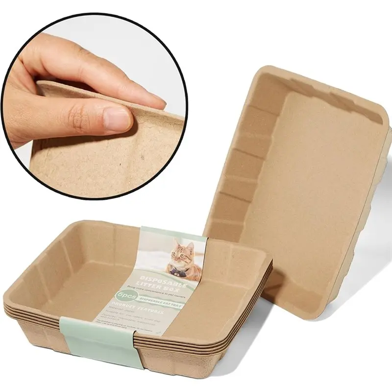 Biodegradable Cat Litter Boxes Disposable Leakproof Cardboard Tray 5Pack