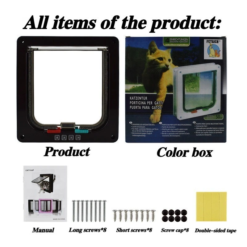 This controllable cat door is designed for both cats and dogs, making it a versatile addition to your home. It is suitable for installation in wooden and glass doors, providing your pets with easy access while maintaining your home’s security.