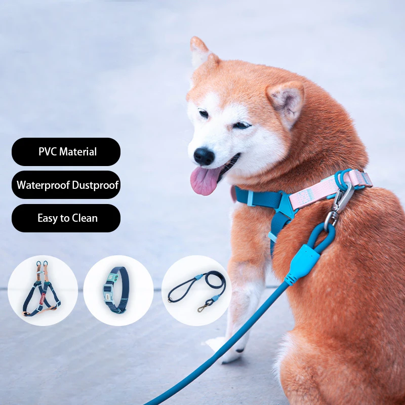 Adjustable Color Blocking Design Dog Waterproof PVC Walking Leash Set