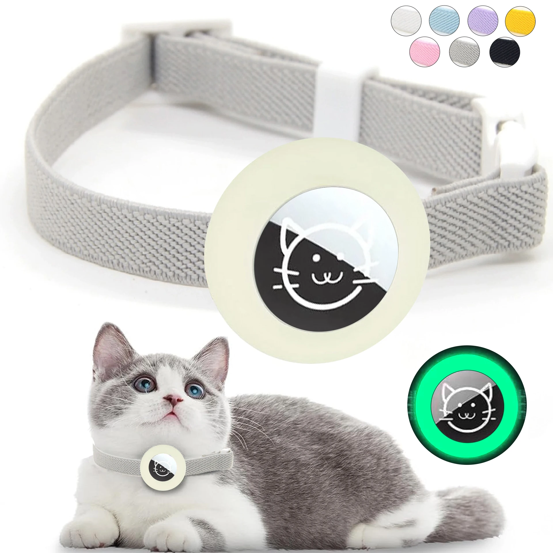 Airtag Cat Collar for Apple Tag Anti-Lost GPS Tracker Protective Case Light Fashion Stretch Elastic Cats Collar for Kitten Puppy