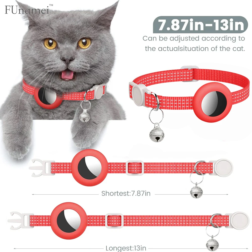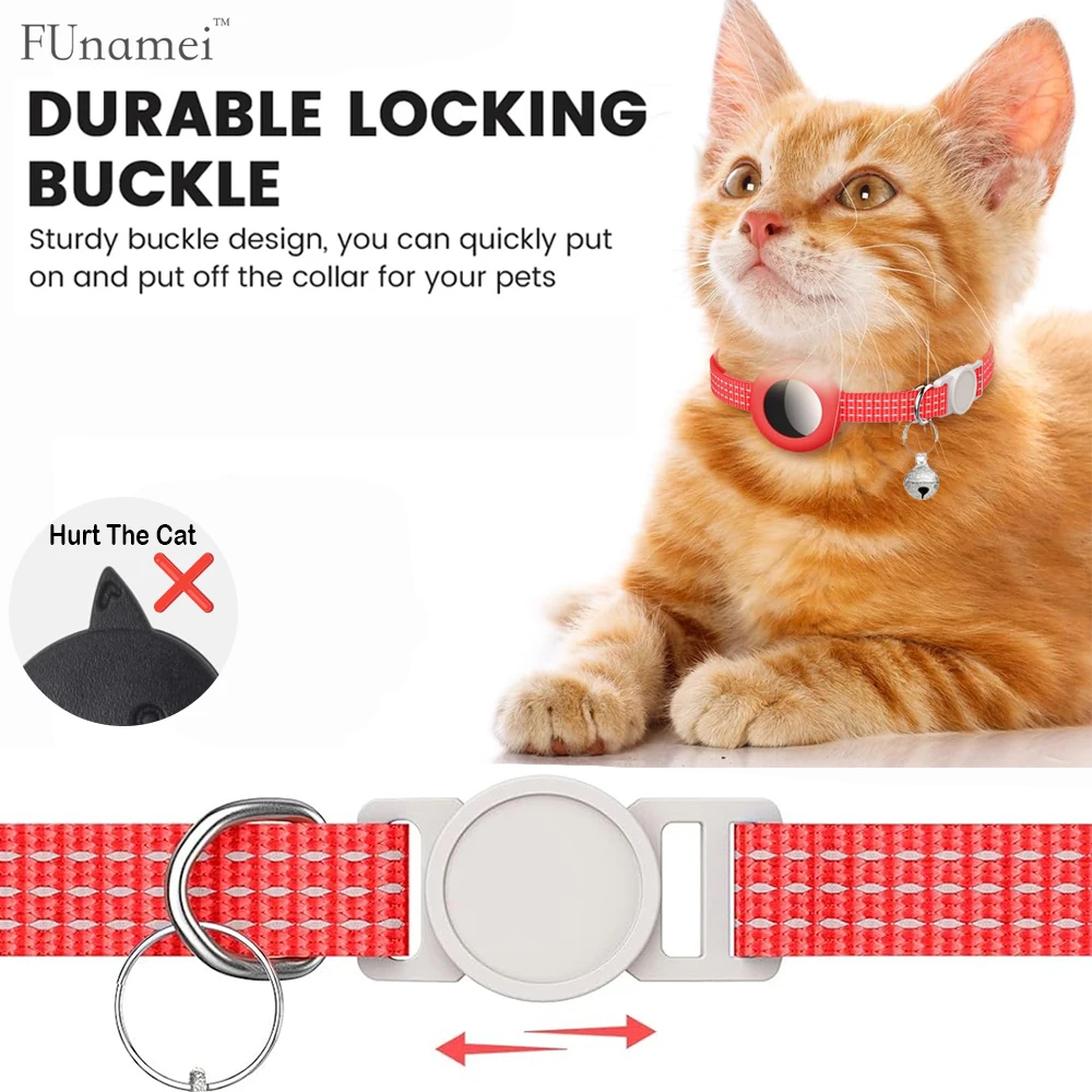 AirTag Cat Collar Reflective Air Tag Kitten Collar with Bell and Holder