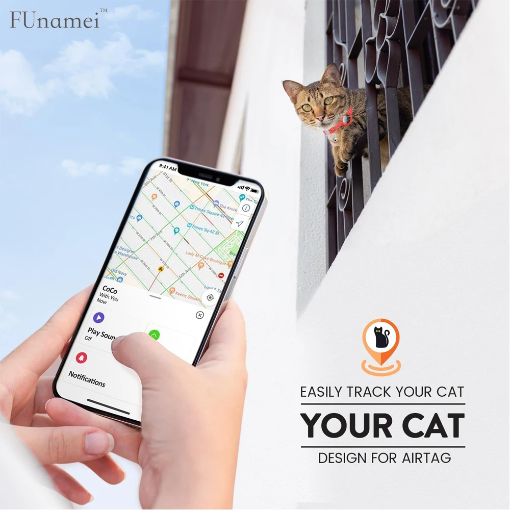 This reflective cat collar is designed specifically for use with Apple AirTags, allowing you to easily track your pet using the Find My app on your iPhone. The collar features an elastic AirTag case that securely holds the AirTag, preventing it from falling off or dangling.