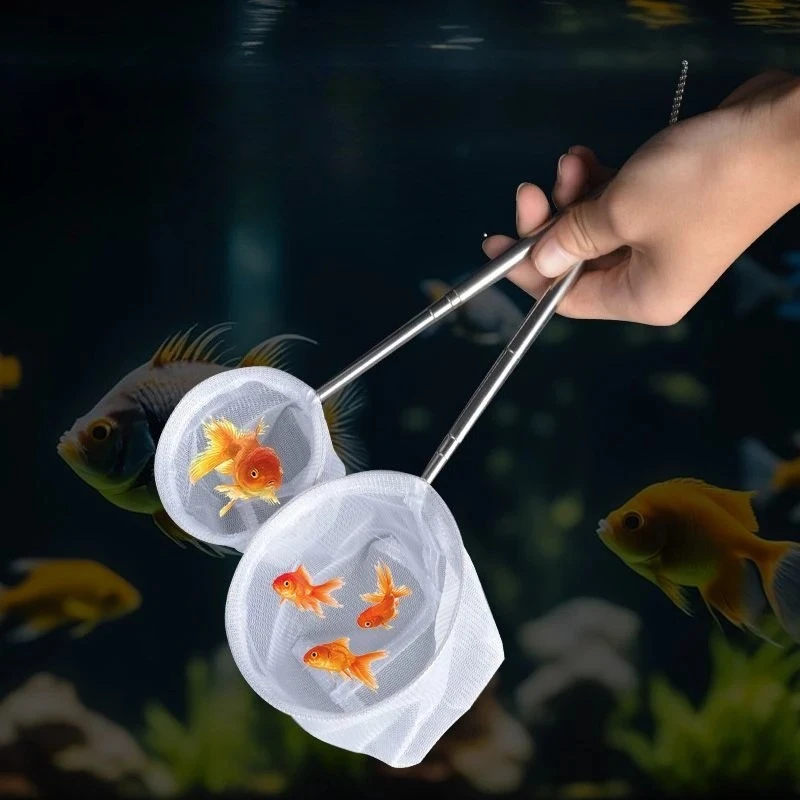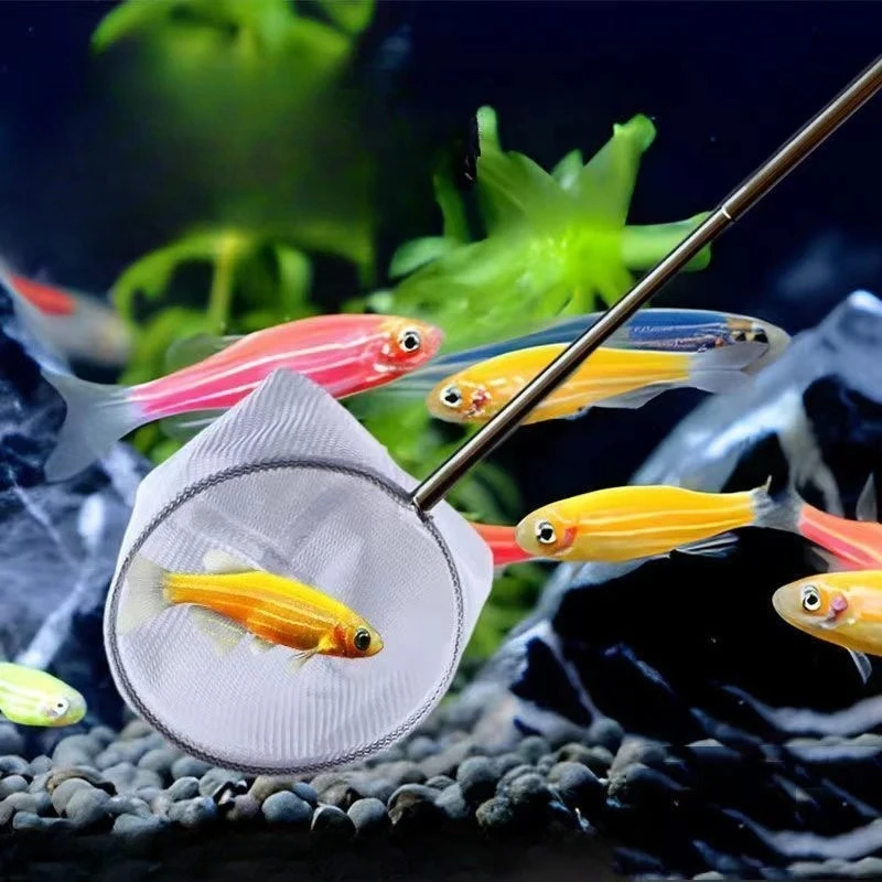 Stainless Steel Telescopic Hand Fishing Net for Aquarium Fish Tank Cleaning