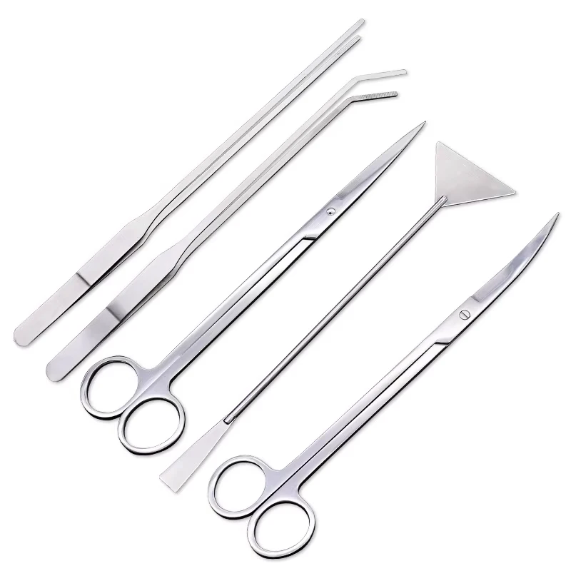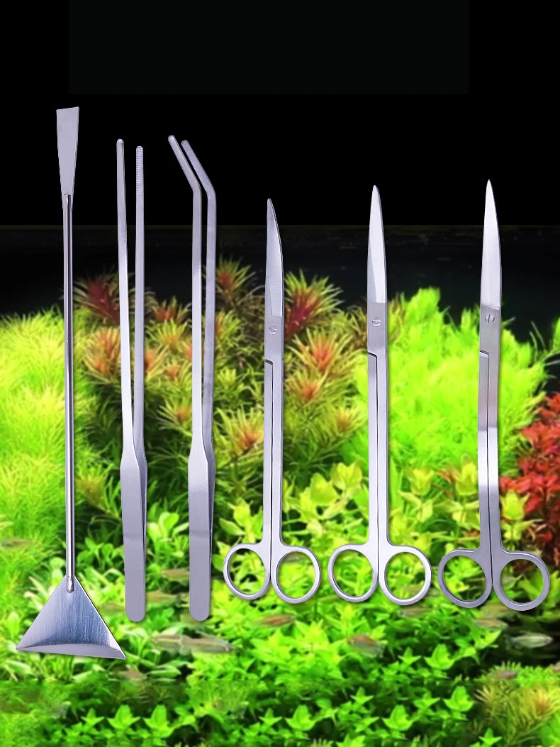 This Aquarium Scissor Tools Set is designed for maintaining and planting aquatic plants in your fish tank. It includes various tools made from high-quality stainless steel, ensuring durability and ease of use.