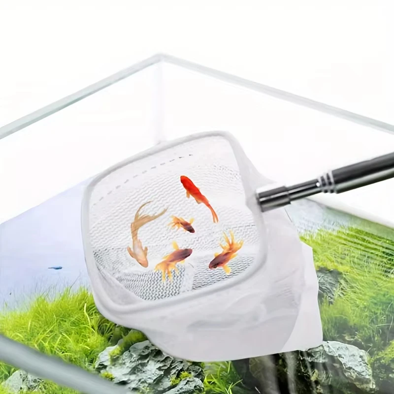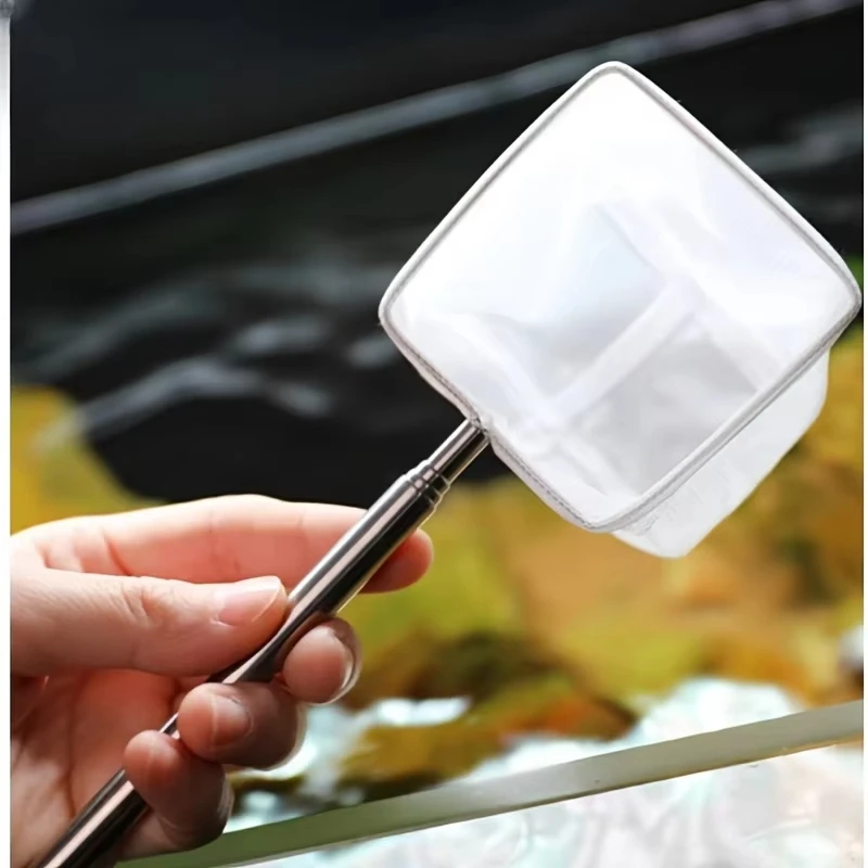 This aquarium square fishing net is designed with a suction cup and an extendable long handle, making it an essential tool for catching fish and shrimp as well as cleaning your tank.