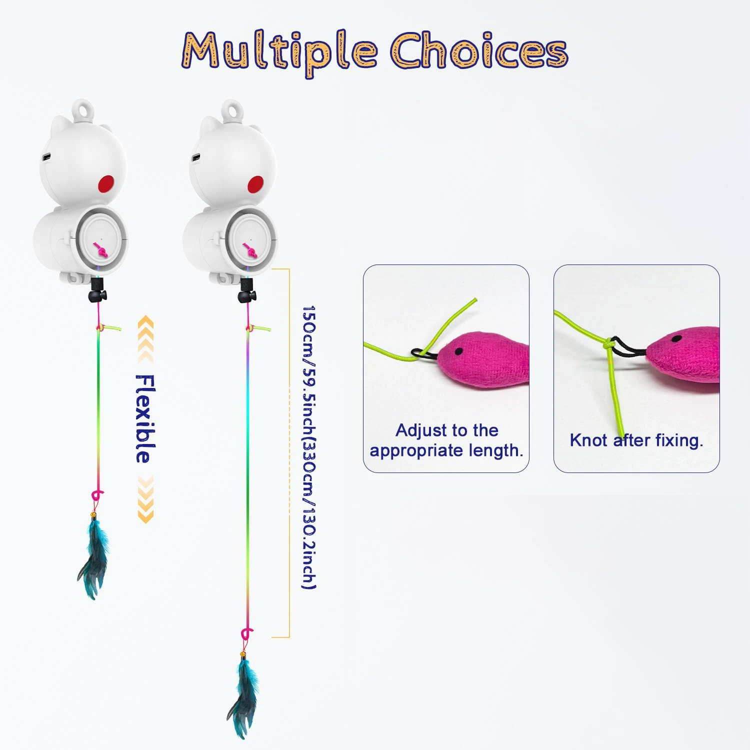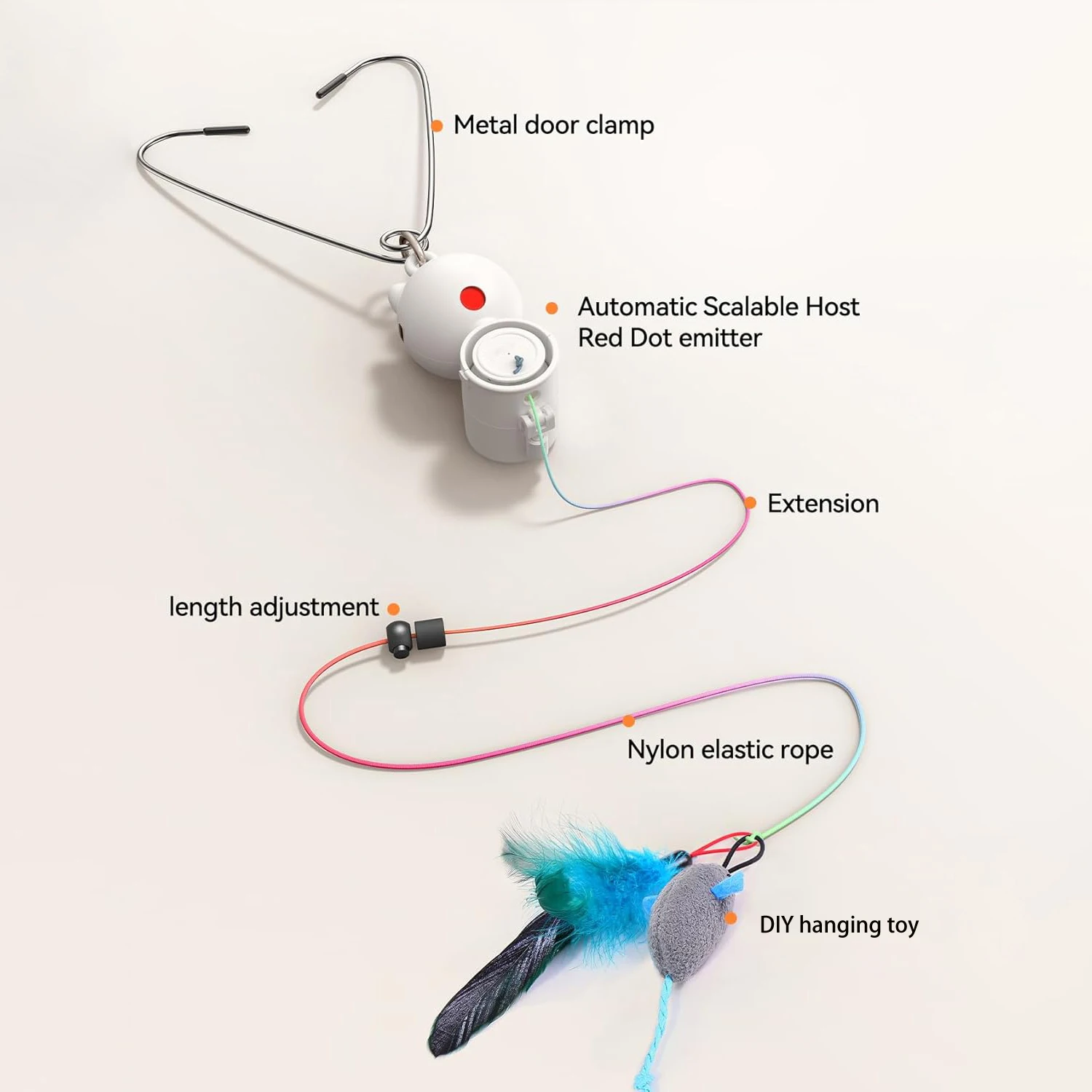 This 2-in-1 cat toy combines laser and feather elements to provide your cat with engaging playtime. Designed to keep your feline entertained, it features automatic motion activation and a retractable feather that encourages jumping and exercise.