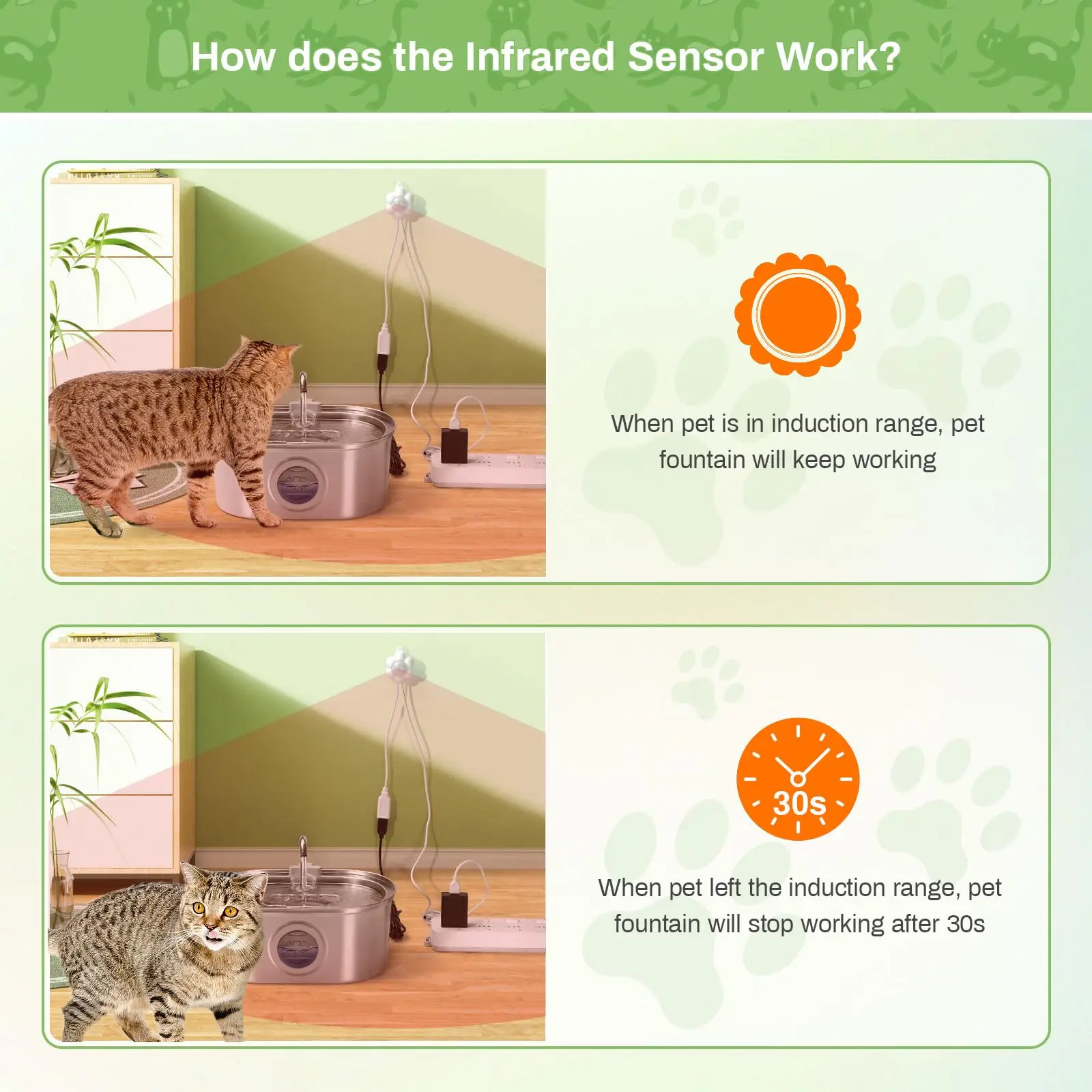 Automatic Cat Water Fountain Stainless Steel Pet Bowl Water Dispenser Feeder