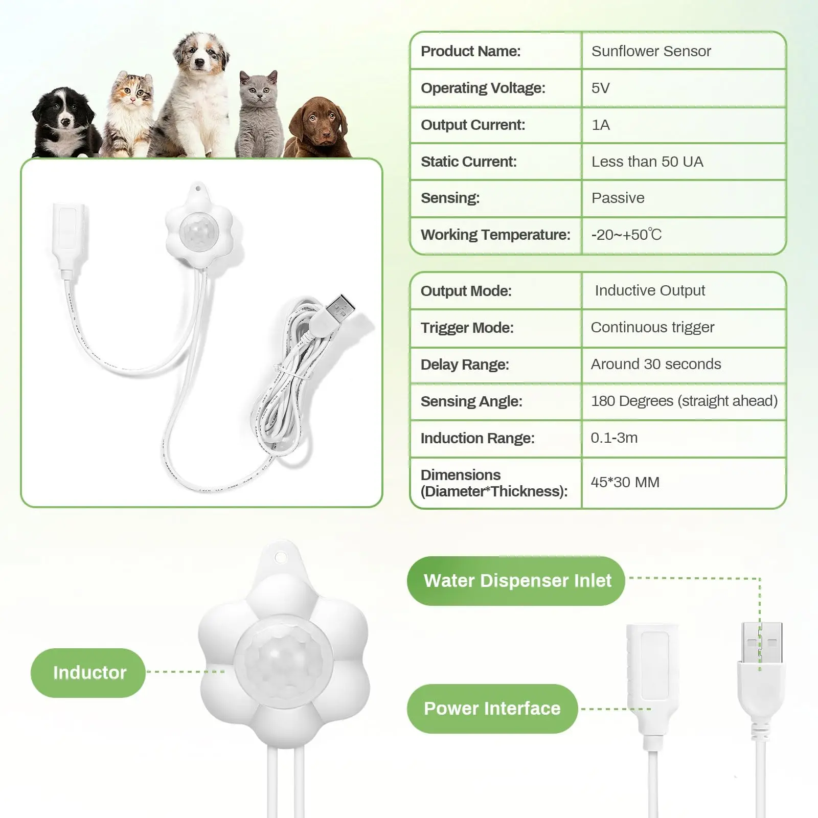 Automatic Home Pet Water Dispenser Motion Sensor Filter Fountain USB Powered