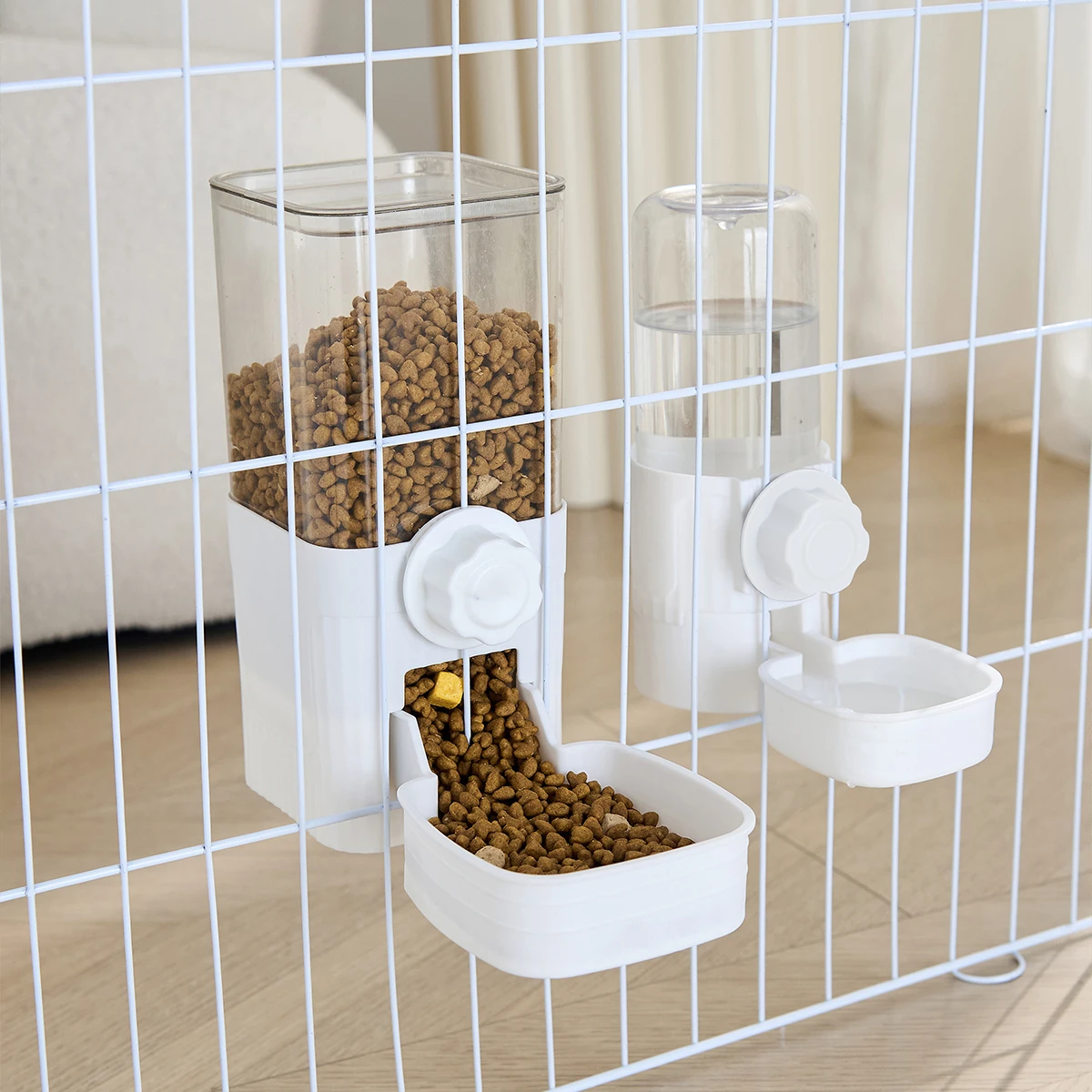 This automatic pet feeder and waterer is designed to provide a convenient feeding solution for small pets such as puppies, kittens, and rabbits. It features a hanging design that can be easily attached to a cage, ensuring that your pets have access to food and water at all times.