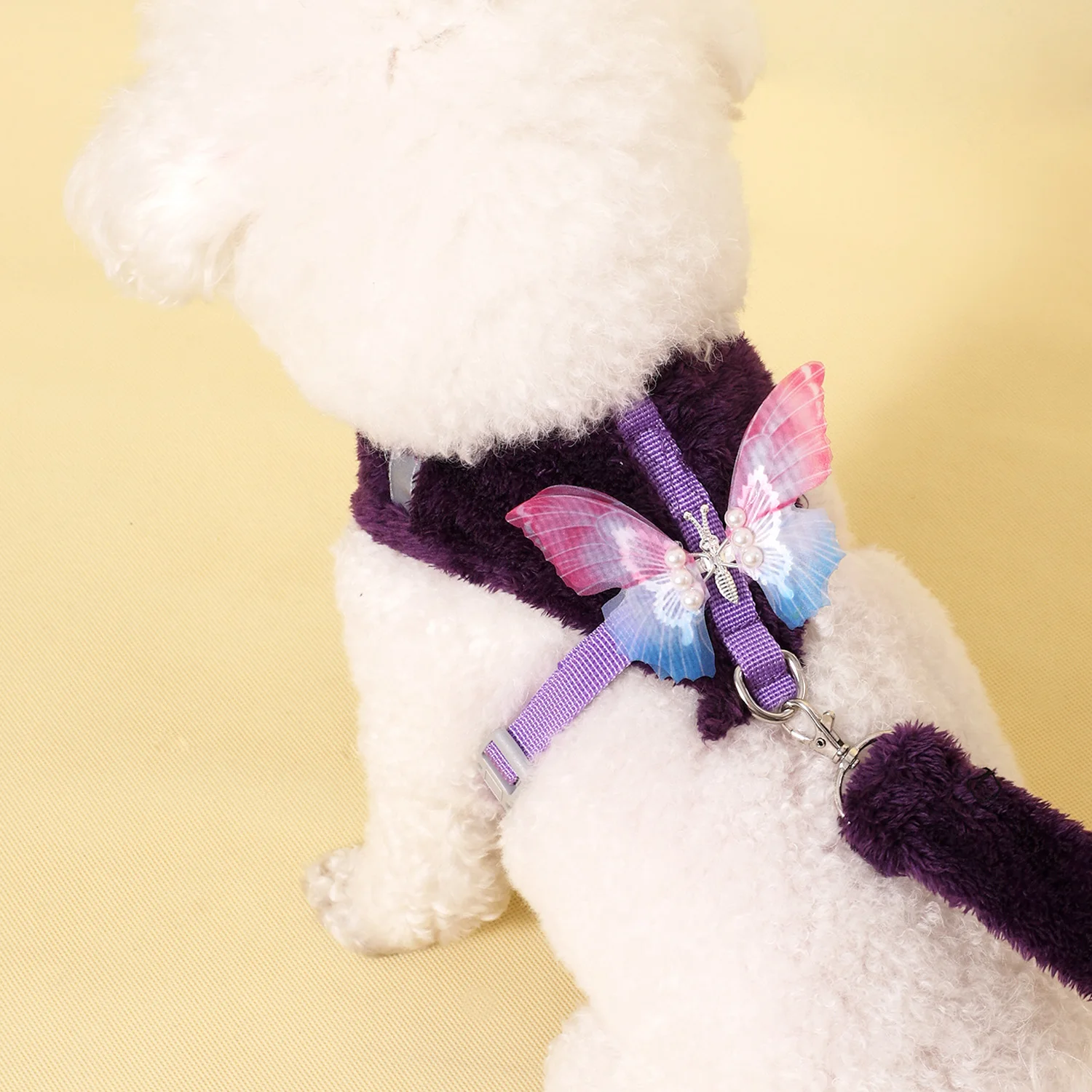 This cute small cat harness and leash set is designed for your furry friends, providing comfort and warmth during winter walks. It is suitable for both cats and small dogs, ensuring they stay cozy while exploring the outdoors.
