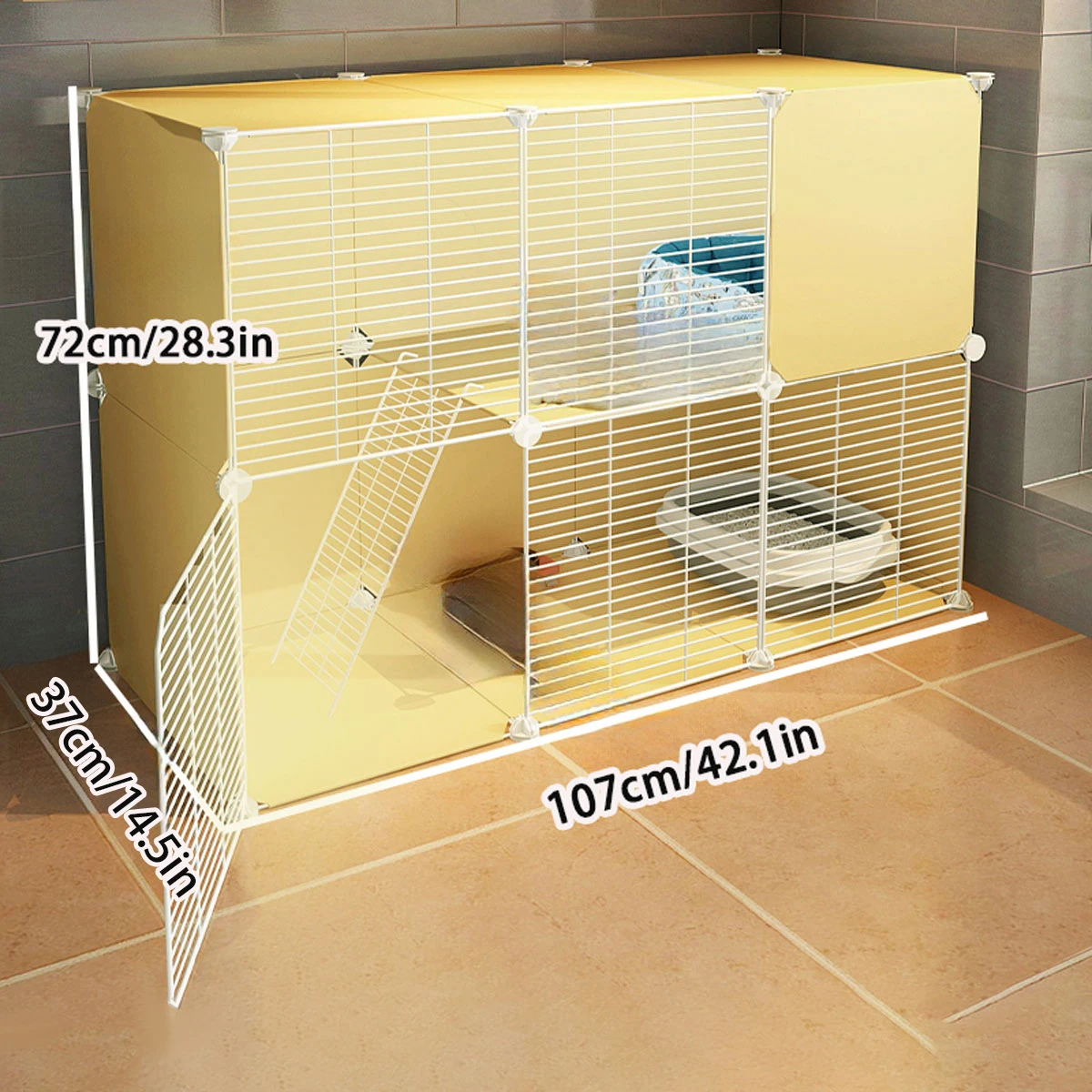 This cat cage is designed for small cats and kittens, providing a comfortable and spacious environment for your pets. It features wheels for easy mobility, making it convenient to move around your home.