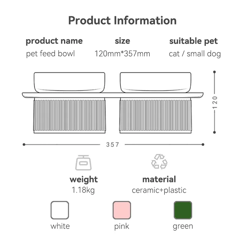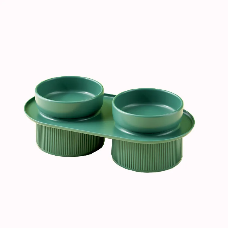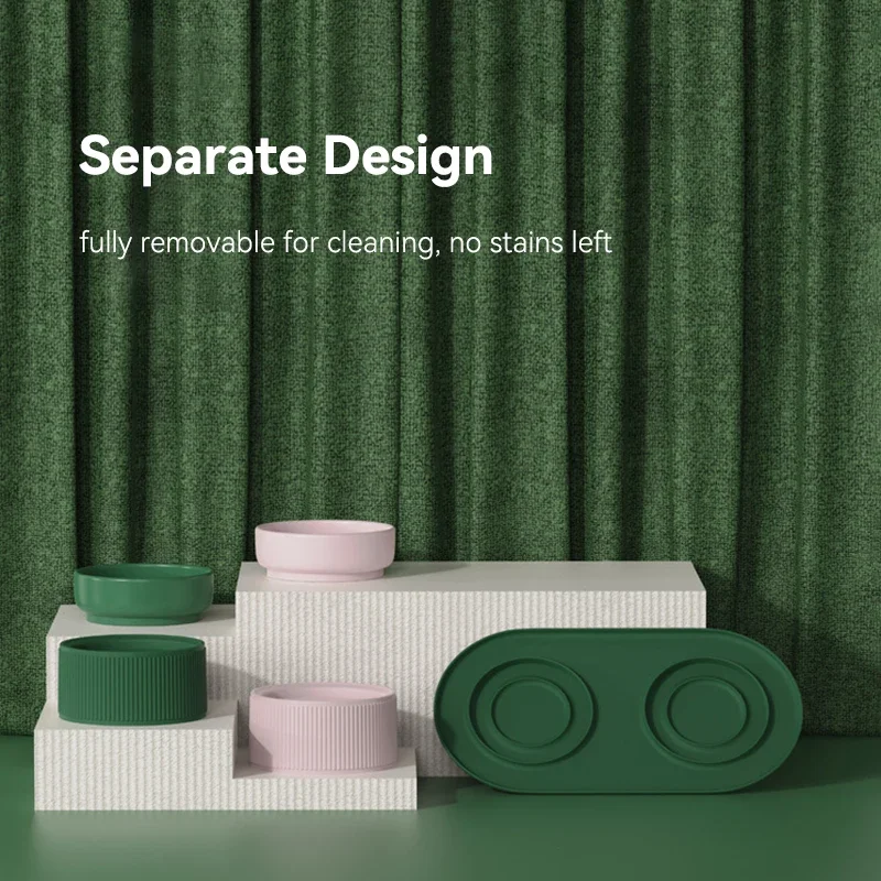 This elevated ceramic bowl set is designed for both cats and dogs, providing a stylish and functional way for your pets to eat and drink. The double bowl design allows for food and water to be served simultaneously, promoting healthy eating habits.