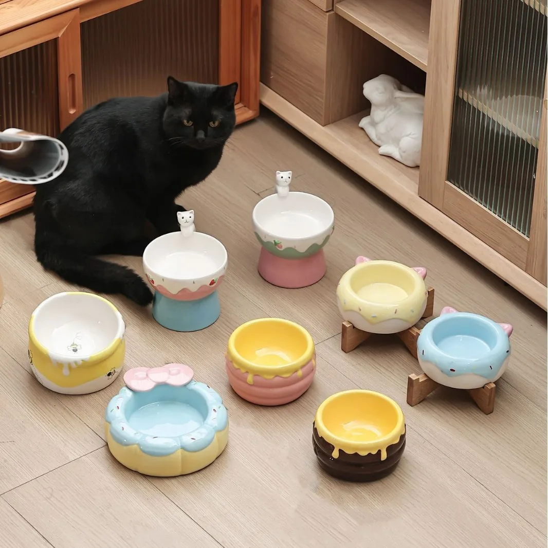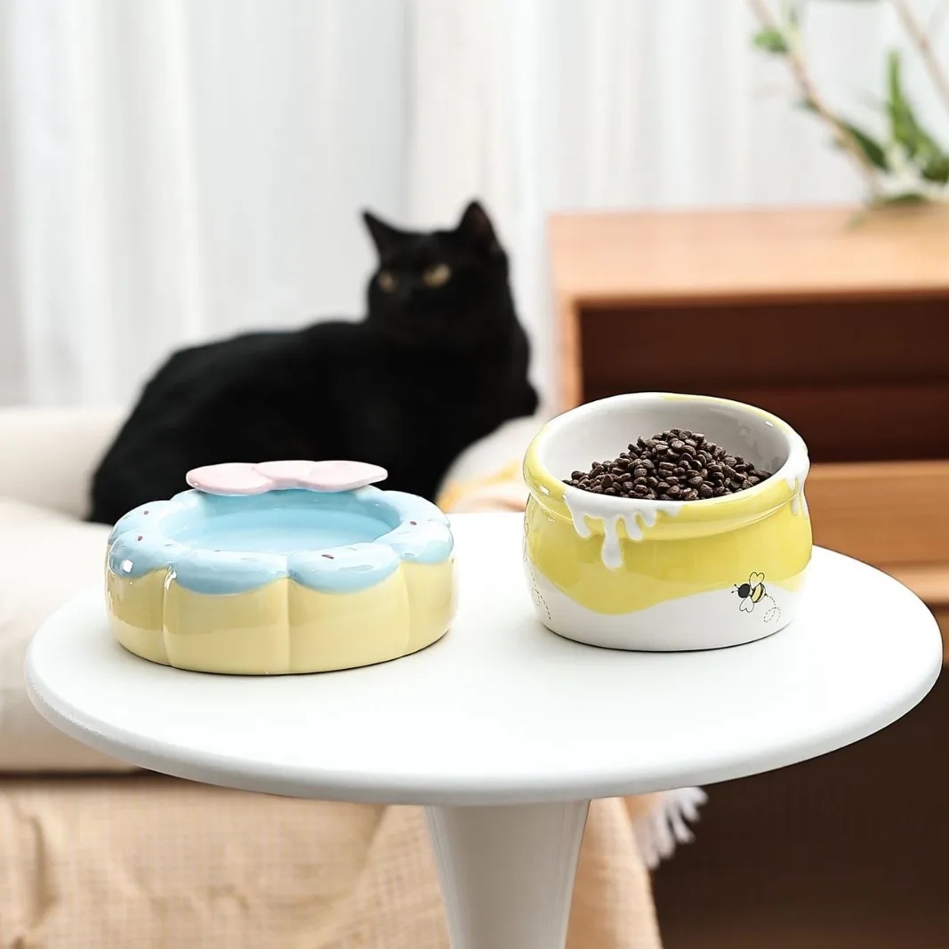 Cat Ceramic Bowl Small Dogs Tilted Elevated Food Water Bowls Cute Pet Supplies